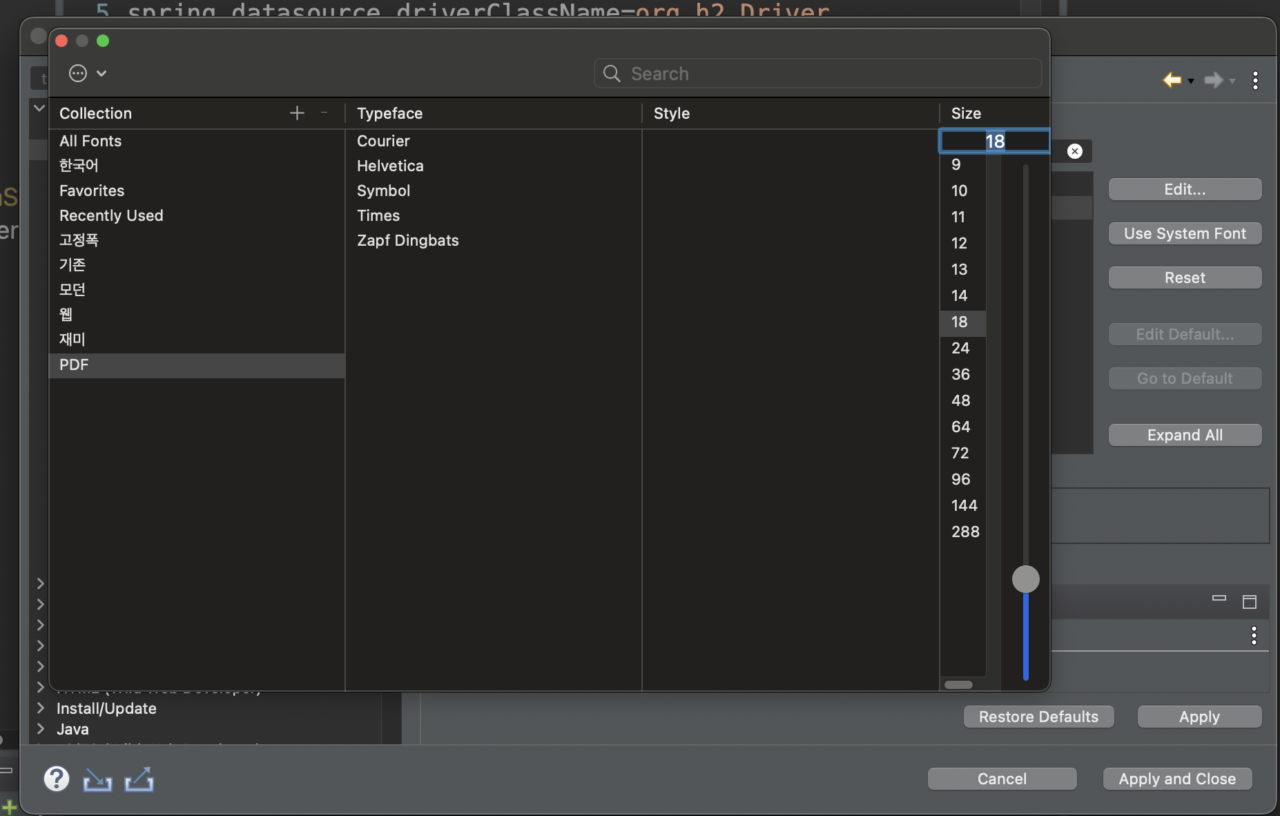 Surin Lee 2023. 12. 11. 22:02자바 스프링 부트를 배우기 시작하며, 점프투 스프링부트에서 권장하는 IDE인 STS4를 처음 써보고 있다. 이클립스 기반으로 만들어진 IDE 라고 한다. 그런데, 글씨가 너무 작은데 "control" + "+" (+ "shift") 단축어가 전혀 먹히지 않아서 그냥 쓰고 있었는데, 거슬려서 설정 먼저 하자 하고 구글링을 해봤다.