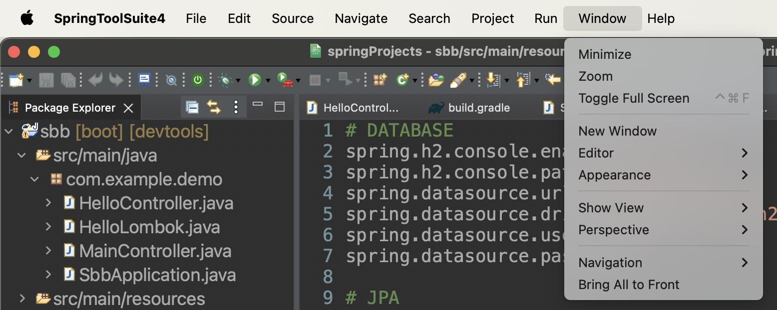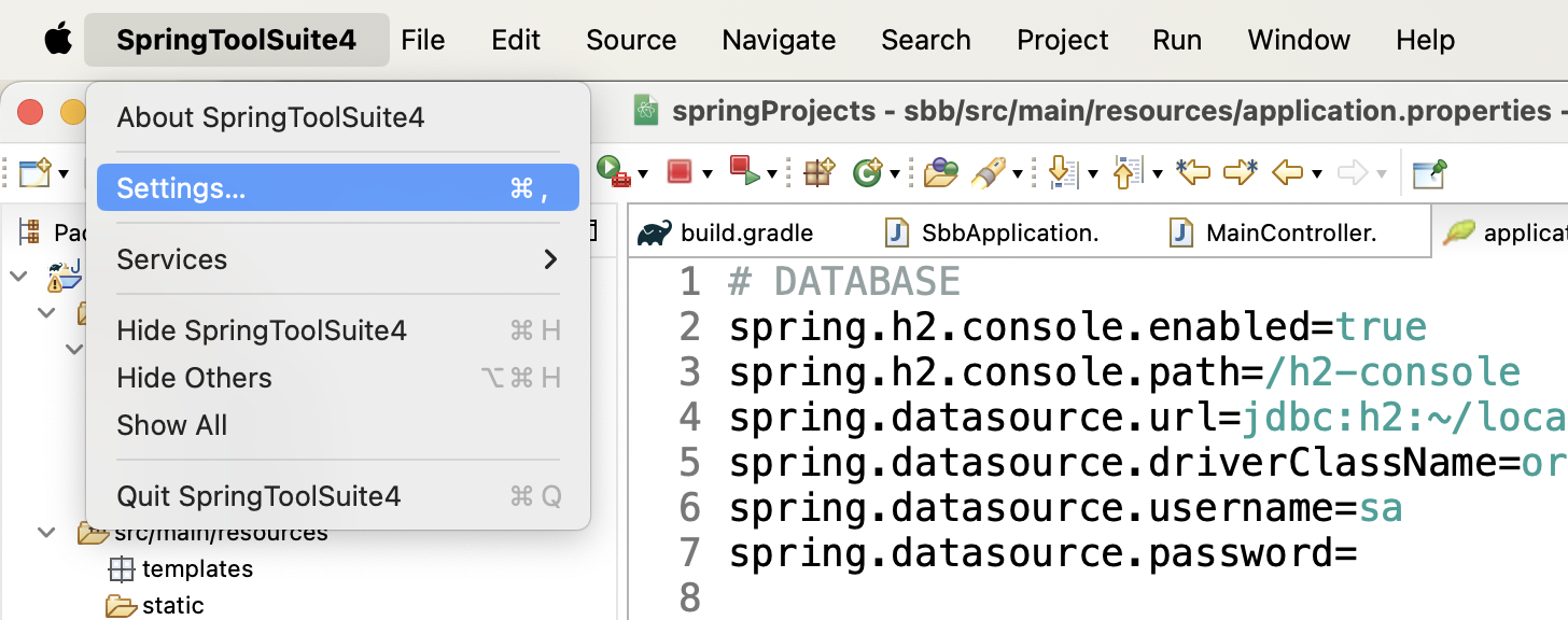 [STS4/MacOS] Window 탭에 Preferences 없을 때 - STS4 Explorer 글자 크기 변경, 다크모드 전환