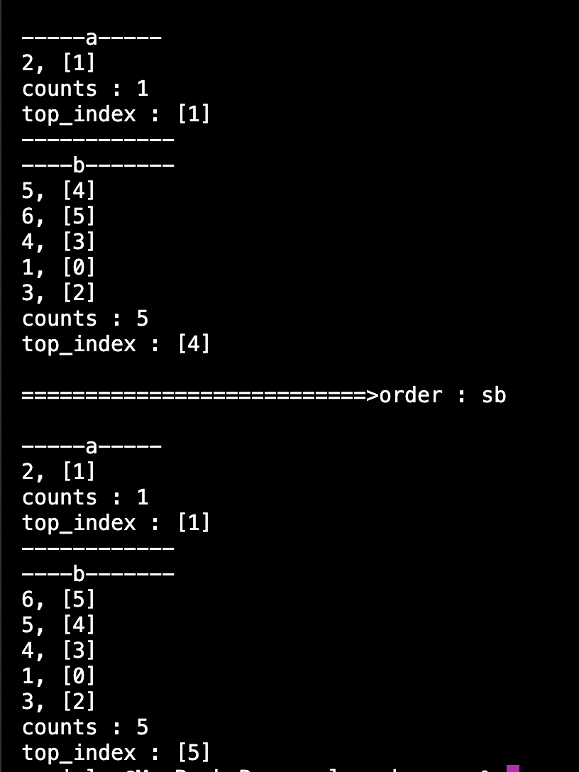 원래는 들어온 입력 값의 오름 차순으로 0부터 indexing 하는 arr4i배열에 값을 넣으면서 스택a에 입력값을 저장하려고 했는데, 현재 new_node를 만드는 함수에서 arr4i에서 해당 content의 indexf를 찾아 넣는 부분이 포함되어있어서, 차라리 indexing 하는 부분을 따로 함수로 빼고, 이 함수의 호출이 마쳐진 이후(arr4i 배열이 오름차순으로 정렬이 끝난 후에 index 값을 저장하는것이 낫겠다고 판단되었다.)
