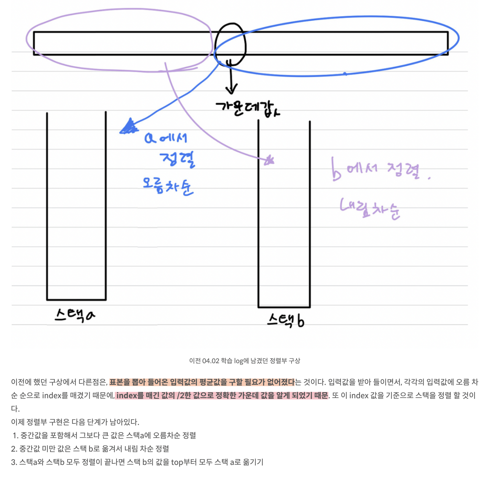 0. 중간값 보다 작은 값을 스택 b로 옮기기.