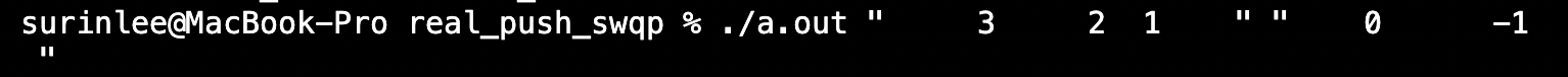 첫 단계인 middle index 보다 작은 값들을 b 스택으로 넘겼다. 그런데, middle은 a스택에 놔두는게 원래 의도였는데, middle도 b로 넘어갔다. 또, index 0의 값도 스택 a에 남아있는 모습이 보였다.