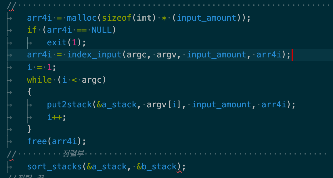 먼저 더 이상 쓸일이 없다고 판단되는 arr4i를 free 하고, 정렬부를 시작했다.