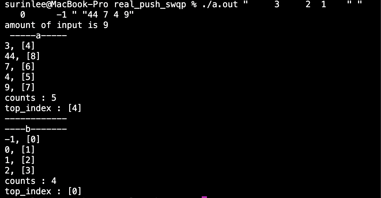 3. 둘다 정렬 끝나면 스택 b의 모든 값 pa해서 스택 a로 보내기