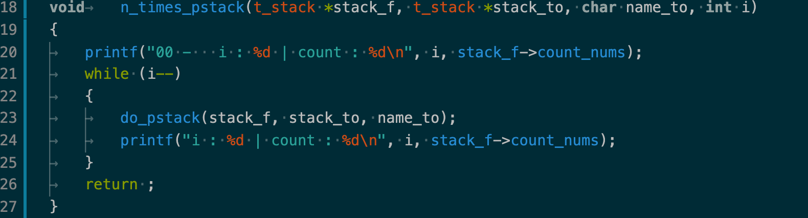 sort_a_stack에서 printf문 호출로 확인해 본 결과, n_times_pstack() 호출 이후 count 문에 문제가 생긴 것을 확인했다.