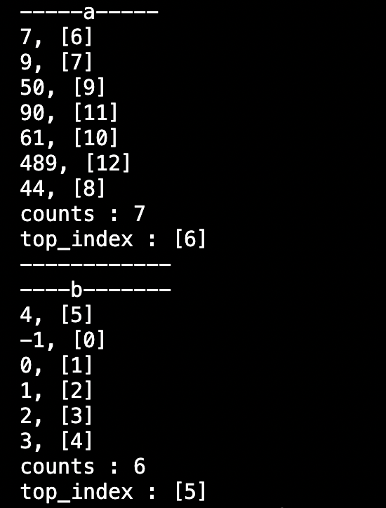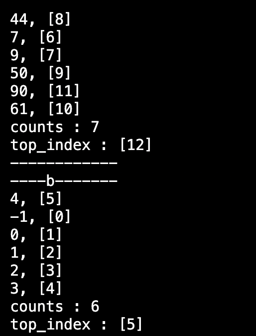 위와 같은 결과를 얻게 되었다. stack -> count값에 문제가 있었다. 첫번째 middle값(a_stack내 최소값인 6)을 a_stack의 top으로 가져올 때는 잘 작동했었는데, "1. 정렬 도중에 count 값에 접근해서 변경한 적이 있는지", "2. stack의 주소가 올바르게 전달되었는지"를 살펴봐야겠다.